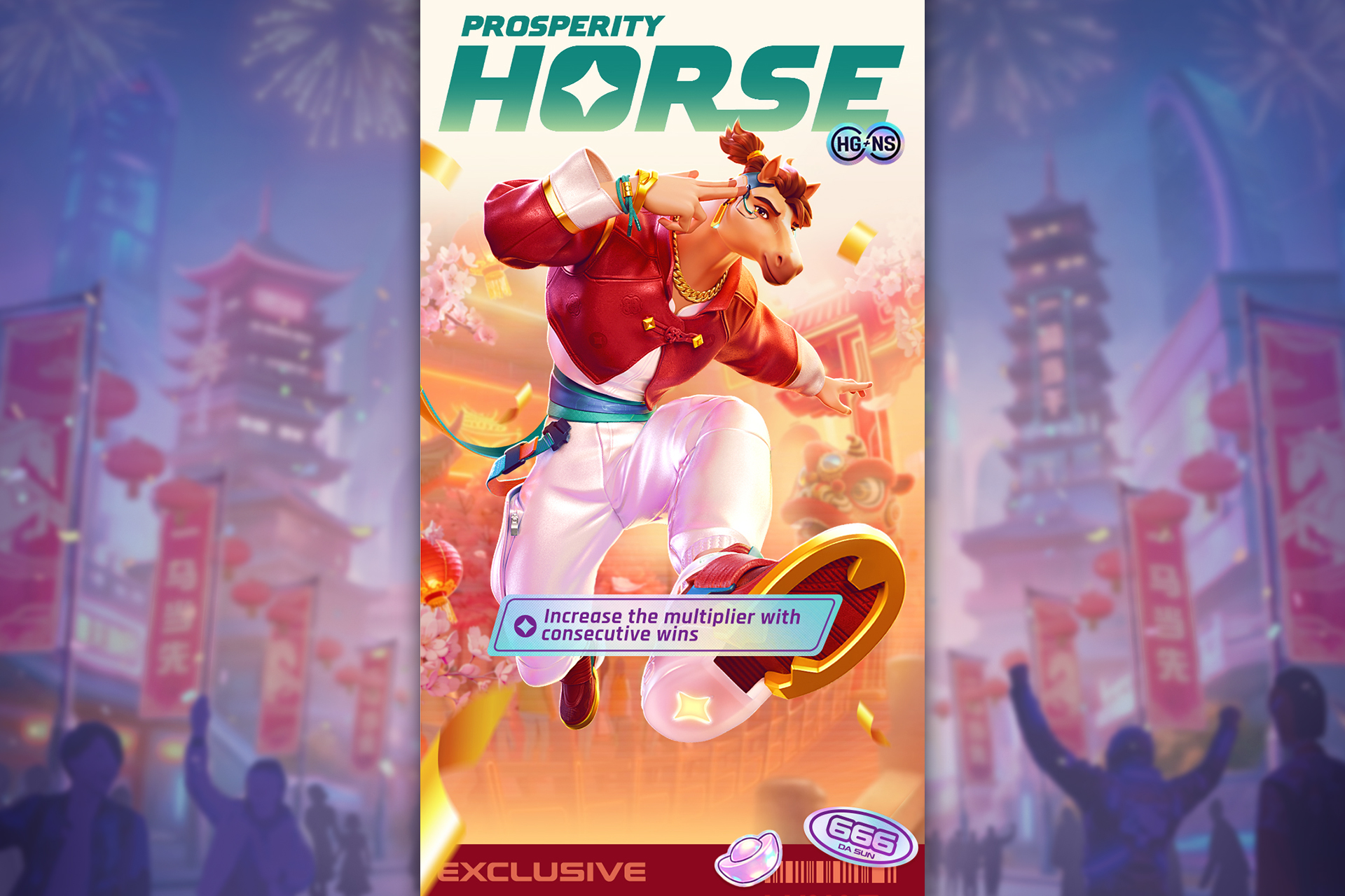 Enter a vision of Lunar New Year, reborn. Prosperity Horse is a high-octane slot experience that launches you into the gleaming corporate utopia of Neo-Arcadia in the year 2088. Guided by the sleek, ultra-confident avatar of fortune known as Prosper, this game reinvents tradition for the cyber-luxe age. With a staggering 32,400 pathways to victory, the action is relentless. The true spectacle ignites when you land 4 Prosper Scatters, triggering the Cyber-Luxe Free Spins. Here, the digital streets of Neo-Arcadia come alive as Stacked Wilds surge with the explosive force of holographic firecrackers, while a dynamic Progressive Multiplier climbs with every cascading win, offering payouts worthy of a futuristic jackpot champion. This is where timeless luck meets tomorrow’s technology in a sleek, neon-drenched adrenaline rush.